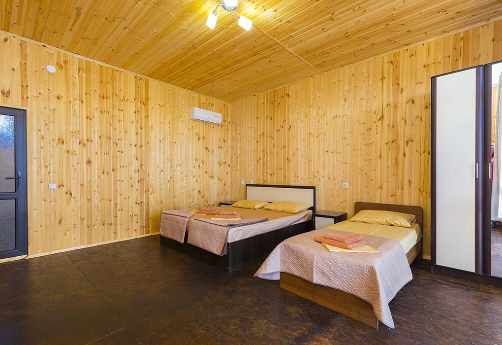 Площадь номера - 24 кв.м. 1 комната. 3 осн. места. В номере: телевизор; кондиционер; душ; туалет; Wi-Fi бесплатный в номере; 1-спальные/ 2-спальная кровать; мини-холодильник. 1 доп. место: Еврораскладушка - может быть установлена до 13 лет.
